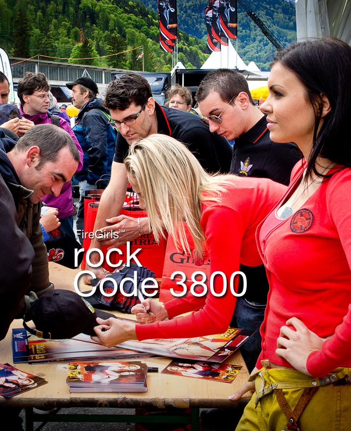 For the second time the FireGirls™ were the undisputed crowd puller in Switzerland. At the international firefighter festival „Code 3800“ in Interlaken, Switzerland, the attendant fire fighters from all over the world jumped at the chance to meet the orginal FireGirls™ in a very close and personal way. Even soldiers of the Swiss Armed Forces queued up patiently to receive an hand-signed calendar. It was the ultimate highlight of many visitors to get a picture together with the unmistakable FireGirls™.